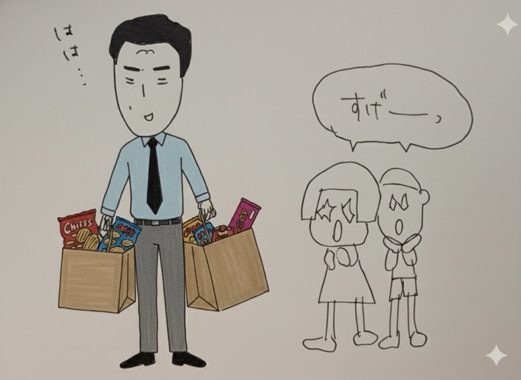 弟と「お父さんすごい!」と父を褒め称え、どのお菓子から食べるから順番を決めたりした記憶が残っている。
